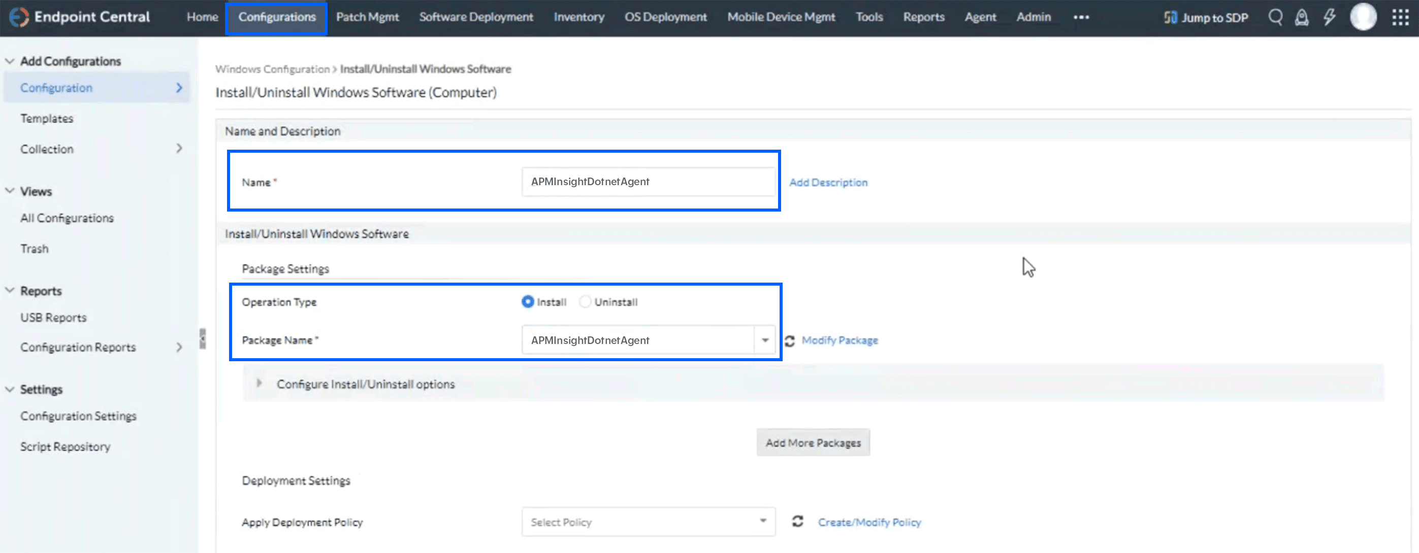 ManageEngine Endpoint Centralを使用したAPMインサイト .NETエージェントの一括インストール