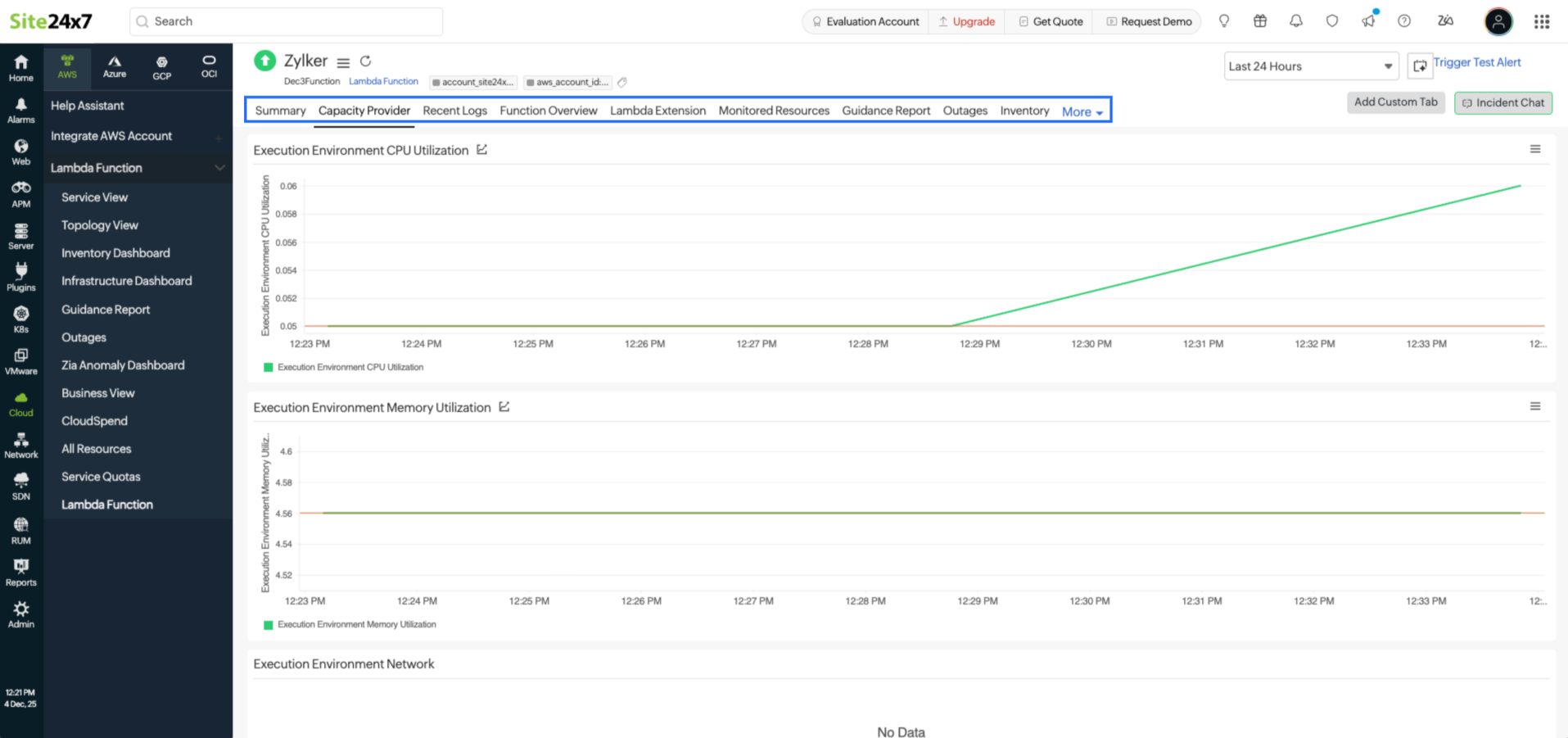 Site24x7はこれらの値をすべて追跡し、Lambda Managed