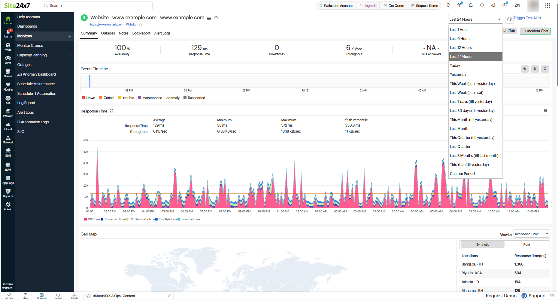 右上のドロップダウンから希望の期間を選択すると、その期間の監視詳細が表示されます。自然言語で期間を指定して詳細を取得する場合は、[Smart Time Selector