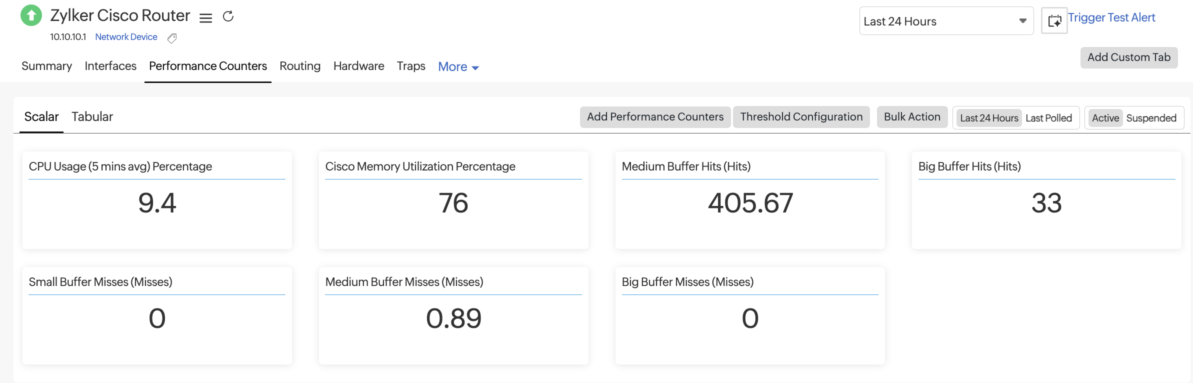 ネットワークに設定されているルーターの可用性と応答時間を追跡します。バッファヒット統計やバッファミス統計といった主要なルーターパフォーマンスメトリックを詳細に可視化します。