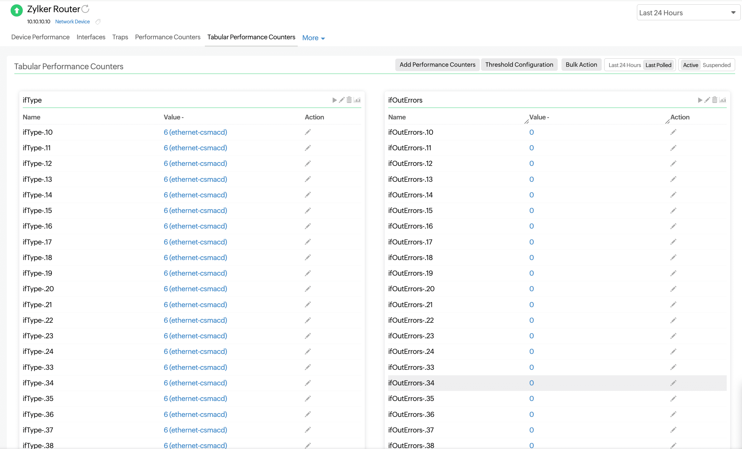 ネットワークデバイスの表形式のSNMPオブジェクト識別子を監視します。これにより、単一のネットワークデバイスにおいて、同じ属性(メモリ、ディスク、インターフェースなど)の複数のインスタンスを監視できます。